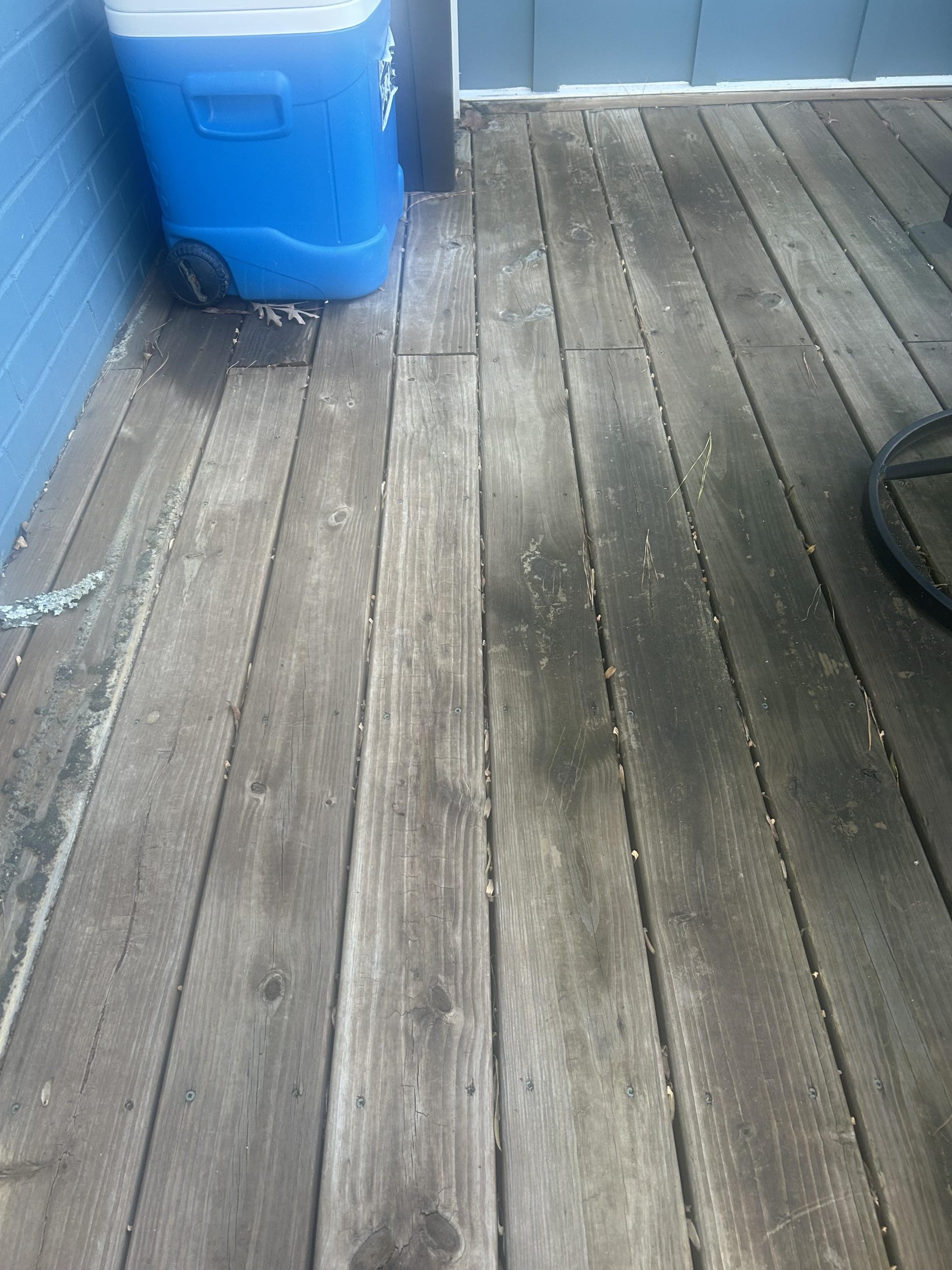 3. I’m seeing fuzz over some of the floor boards and rail posts. Is it because I power washed too close to the wood ? Can I stain over it or do I need to sand it and then stain?